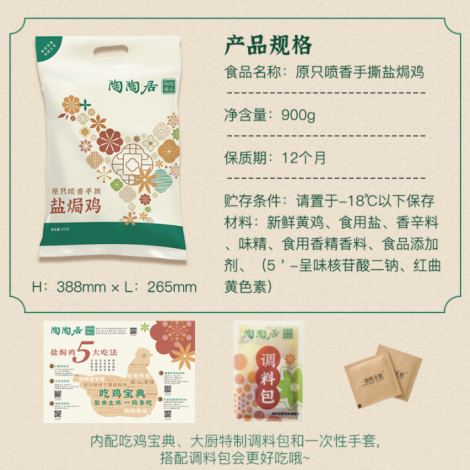 广州陶陶居酒家盐焗鸡 整只喷香手撕鸡900g熟食美食窑鸡走地烧鸡 经典广东广式特产 盐焗鸡 900g*2